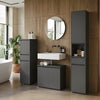 - KOMPLETT-SET 4-TEILIG: Enthält 1x runden Wandspiegel, 1x Hochschrank, 1x Waschbeckenunterschrank und 1x Beistellschrank – perfekt aufeinander abgestimmt.