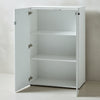 - 1x Aktenschrank (80 x 37 x 120 cm): Midi-Höhe (3 Ordnerhöhen), 2 Türen (abschließbar & Soft-Close), Glasfront & Glas-Oberboden.