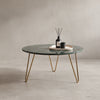 Couchtisch Grün Marmor Dreibein Design 70x70x35 cm, Rund Modern Gold Metall