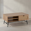 Couchtisch in Eiche-Dekor und Rattan, 100x60x45 cm, mit integriertem Stauraum