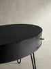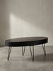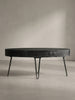 Couchtisch in Mango-Massivholz und Metall, 100x50x40 cm, Oval, mit Schublade, Stauraum und Haarnadelbeinen