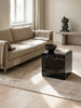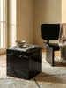 Couchtisch MONOBLOC in Hochglanz mit Marmor-Optik, Würfelform