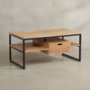 Couchtisch Rechteckig in Akazie Massivholz und Metall, 90x50x42cm, mit Schublade und zusätzlichem Stauraum