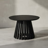 Couchtisch Schwarz Massivholz Mango Rund 60x60x41 cm mit Gittergestell Modern
