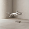 - HAI-ALARM: Diese elegante und markante Dekofigur kombiniert maritimes Flair mit modernem Luxus. Aus robustem Metall gefertigt und in mattem Silber veredelt, ist sie ein echter Blickfang auf Tisch, Regal oder Sideboard – ideal, um stilvolle Wohnräume mit einem außergewöhnlichen Highlight zu bereichern