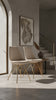- MATERIAL: Die Sitzschalenbezüge bestehen aus Cara-Stoff. Die Beine sind aus goldfarben lackiertem Eisen hergestellt