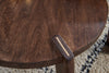 - Die Anmutige Holzmaserung auf beiden runden Tischplatten und die Zierstreifen aus Messing oberhalb der Tischbeine machen den Look perfekt.