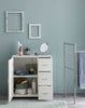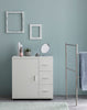 Die elegante silberfarbene Griffe setzen sich wunderschön vom matten weißen Korpus des Schranks ab und verleihen ihm ein stilvolles Aussehen. Der Badezimmerschrank ist zudem mit Kunststoff-Füßen ausgestattet, die für einen sicheren Stand sorgen und Ihren Boden vor unschönen Kratzern schützen.