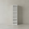 Mit seinen schmalen Abmessungen von 21 cm Breite, 90 cm Höhe und 20 cm Tiefe ist dieses Regal besonders platzsparend. Es passt optimal in Nischen, kleine Wohnräume oder jedes andere Zuhause, in dem der Raum begrenzt ist.