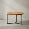 Couchtisch aus Akazienholz mit robustem Eisengestell und integriertem Stauraum, elegantes Design