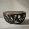 - Runde Tischplatte aus hochwertigem, recyceltem Mangoholz in dunklem und hellem Braun