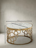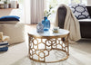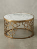 Unser KADIMA DESIGN Couchtisch "Marble" verschönert jedes Wohnzimmer mit seinem eleganten Design. Die Tischplatte besteht aus echtem Marmor und das Metallgestell ist in einem goldenen Farbton gehalten, was für eine luxuriöse Atmosphäre sorgt. Dieser Wohnzimmertisch ist ein absoluter Hingucker.