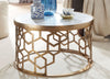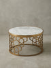 Die Materialkombination aus indischer Marmorplatte und lackiertem Aluminiumgestell sorgt für eine hohe Langlebigkeit des Couchtisches. Das robuste Metallgestell in Goldoptik bietet eine stabile Basis und wirkt gleichzeitig stilvoll. Dadurch haben Sie lange Freude an diesem hochwertigen Möbelstück.