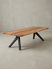 Couchtisch in Natur, Massivholz Akazie, Baumkante, pulverbeschichteter Edelstahl, Unikat