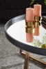Der KADIMA DESIGN Couchtisch Rund Gold ist ein stilvoller und moderner Wohnzimmertisch, der mit seinem goldfarbenen Metallgestell und der verspiegelten Glasplatte ein edles Design bietet.