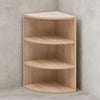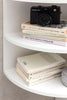 Das KADIMA DESIGN Eckregal NIDDA ist eine moderne und schlichte Lösung für zusätzlichen Stauraum und Dekoration in Ihrem Zuhause. Mit einer runden Front und 3 geräumigen Regalfächern bietet es viel Platz für Bilderrahmen, Dekorationen und vieles mehr.