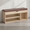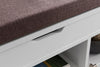 Ein besonderes Highlight dieser Bank ist der zusätzliche Stauraum, den die Regalfächer und das Fach unter der Sitzfläche bieten. Hier finden Schuhe und andere Accessoires einen ordentlichen Platz, wodurch die Garderobe aufgeräumt und geordnet bleibt. Die Bank ist belastbar mit etwa 80 kg.