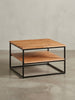 Couchtisch Industrial, Akazienholz mit Metallbeinen, platzsparend, handgefertigt, zwei Ablageflächen