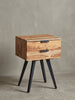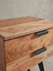 Die KADIMA Nachtkonsole vereint Hochwertigkeit und modernes Design auf perfekte Weise. Mit ihrer einzigartigen Kombination aus Akazien-Massivholz und lackiertem Eisen fügt sie sich nahtlos in jedes Boxspringbett oder Schlafzimmer im Industrial-Style ein.