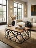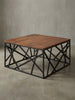 Couchtisch Industrial Stil, Sheesham Holz, Schwarzes Metallgestell, 60x60 cm