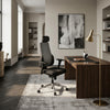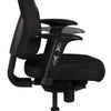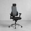 Die trapezförmige Rückenlehne des Chefsessels ist in einem modernen Schwarz/Grau Design gehalten und verfügt über extra gepolsterte Seitenflanken. Dadurch wird eine ergonomische Sitzposition ermöglicht, die für eine optimale Entlastung des Rückens sorgt und langfristig gesundes Sitzen unterstützt.
