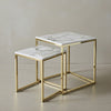 Dieses Set besteht aus zwei quadratischen Beistelltischen in eleganter Marmoroptik. Das moderne Design und die hochwertige Verarbeitung machen diese Tische zu einem stilvollen Blickfang in jedem Raum.