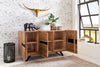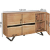 Die einzigartige Baumkante und der moderne Landhausstil werden durch die geschmackvollen Metall-Dekorstreifen ergänzt. Mit drei großen Türen bietet es umfangreichen Stauraum, der durch die fest eingebauten Einlegeböden optimal genutzt werden kann.