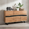 - Einzigartiges Design: Natürliche Baumkante mit modernem Landhausstil, schwarzem Metall-Dekorstreifen und drei großen Türen