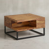 Couchtisch in Sheeshamholz mit Staufach, 60x60x34,5 cm, Industrial-Design
