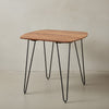- Edle Materialien: Der Tisch besteht aus Massivholz mit schöner Maserung und hat haarnadelförmige Beine aus Metall