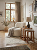 Satztische Sheesham Massivholz natur 36x36x50 cm in stilvoller Wohnzimmer / Lese-Ecke-Einrichtung mit Dekoration und Accessoires aus der Vogelperspektive_