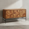Setzen Sie mit dem Massivholz Sideboard mit Edelstahlgestell einen Akzent von Industrial-Design und Eleganz in Ihrem Wohnbereich.