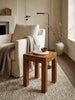 - Der Tisch ist in verschiedenen Größen erhältlich: Wählen Sie zwischen dem Couchtisch mit den Maßen 45x45x40cm oder dem kleineren Beistelltisch mit 35x35x30cm. Beide Modelle sind perfekt in Ecken platzierbar.