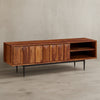 Diese hochwertige TV-Kommode aus massivem Edelholz vereint Stil und Funktionalität für Ihr Wohnzimmer. Handgefertigt und mit schützendem Klarlack veredelt, besticht sie durch außergewöhnliche Langlebigkeit und zeitloses Design.