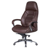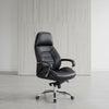 Das robuste Design des Chefsessels umfasst elegante Aluminium-Armlehnen und ein silberfarbenes Fußkreuz, das für eine hohe Standsicherheit sorgt. Die Sitzschale und Rückenlehne sind ergonomisch geformt und bieten eine elegante und üppige Polsterung mit hochwertigem Bezug.