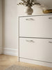 - Großer Stauraum: Der Schuhkipper verfügt über 2 geräumige Fächer mit farblich abgesetzten Griffen und einer geschlossenen Rückwand. Dadurch sind Ihre Schuhe vor Schmutz geschützt und werden optimal verwahrt.