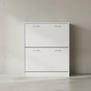 - DESIGN: Moderner Schuhschrank mit klaren Linien und zwei Klappen, je Klappe zwei farblich abgesetzte Griffe