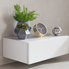 Die KADIMA DESIGN Nachtkonsole MOLISE ist ein schlichtes und zeitloses Nachtkästchen mit klaren Linien und rechteckiger Ablagefläche, das neben dem Bett montiert wird. Die kleine Schublade bietet zusätzlichen Stauraum für Bücher, Medikamente und weitere Utensilien.