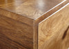 - Der Nachttisch besteht aus hochwertigem Mango Massivholz, das mit einem schützenden Klarlack überzogen ist. Die Kombination aus Holz und lackiertem Eisen verleiht ihm eine besonders angesagte Optik, die jedes Schlafzimmer aufwertet.