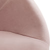 Die Metallbeinkonstruktion und goldenen Beine wirken als Kontrast zum weichen Sitzschalenbezug und bieten gleichzeitig sicheren Halt.