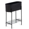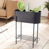 Pflanzkübel Metall Schwarz 51x65x22 cm mit Gestell und Ablage rechteckig