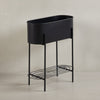 - Modernes Design: Rechteckiger Pflanzenkübel in schwarzem, pulverbeschichtetem Eisen mit stilvollem Gestell