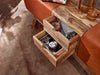 - MATERIAL: Bezug aus 100 % Ziegenleder,Gestell und Schubladen aus massivem Mango-Holz mit schützendem Klarlack