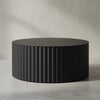 Entdecken Sie den KADIMA DESIGN Couchtisch in Schwarz – eine perfekte Mischung aus Funktionalität und Stil für Ihr Wohnzimmer. Dieser runde Sofatisch misst 67x67x31 cm und ist aus hochwertigem, pulverbeschichtetem Eisen gefertigt. Sein modernes Design zeichnet sich durch ein attraktives Wellen-Muster in Lamellen-Optik aus, welches jedem Raum einen Hauch von Eleganz verleiht.