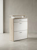 Mit formvollendeten Griffen und farblichen Akzenten ist dieser Schuhschrank zeitlos und ansprechend gestaltet. Er fügt sich harmonisch in jede Einrichtung ein.