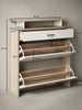Mit insgesamt 4 Schuhfächern bietet der Schuhkipper ausreichend Stauraum für Schuhe aller Art. Die geräumige Schublade ermöglicht zusätzlichen Stauraum für Kleinigkeiten.
