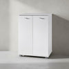 Langlebiges Material: Der Schrank besteht hauptsächlich aus stabiler Spanplatte und robustem Kunststoff. Mit seitlichen Metallbeschlägen sorgt er für eine hohe Stabilität und eine langfristige Nutzungsdauer.