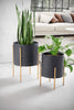 - Elegantes Design für moderne Räumlichkeiten: Zweiteiliges Set aus schwarzen Metall-Pflanzkübeln mit goldenen Füßen, ideal für Wohn- und Arbeitszimmer