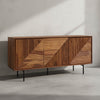 Dieses erlesene Sideboard von KADIMA DESIGN kombiniert Funktionalität und zeitgenössisches Design und stellt eine ideale Bereicherung für Ihr Zuhause dar. Es ist aus qualitativ hochwertigem Edelholz und einem stabilen Metallgestell gefertigt, was Langlebigkeit und Stabilität verspricht. Ein besonderes Highlight ist die ausgefallene 3D-Oberflächengestaltung der Türfronten, welche zusammen mit der natürlichen Holzmaserung einen echten Blickfang bildet.