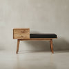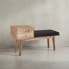 Sitzbank – Mango Holz, Schwarz, Schubladen, Retro-Stil